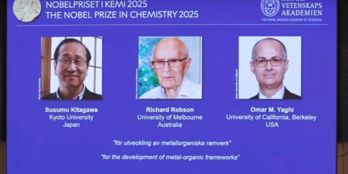 O Prêmio Nobel de Química de 2025 foi concedido aos cientistas Susumu Kitagawa, Richard Robson e Omar M. Yaghi pelo desenvolvimento das estruturas metal-orgânicas, conhecidas como MOFs (metal-organic frameworks). Essas estruturas são consideradas uma das descobertas mais inovadoras da ciência dos materiais dos últimos tempos.