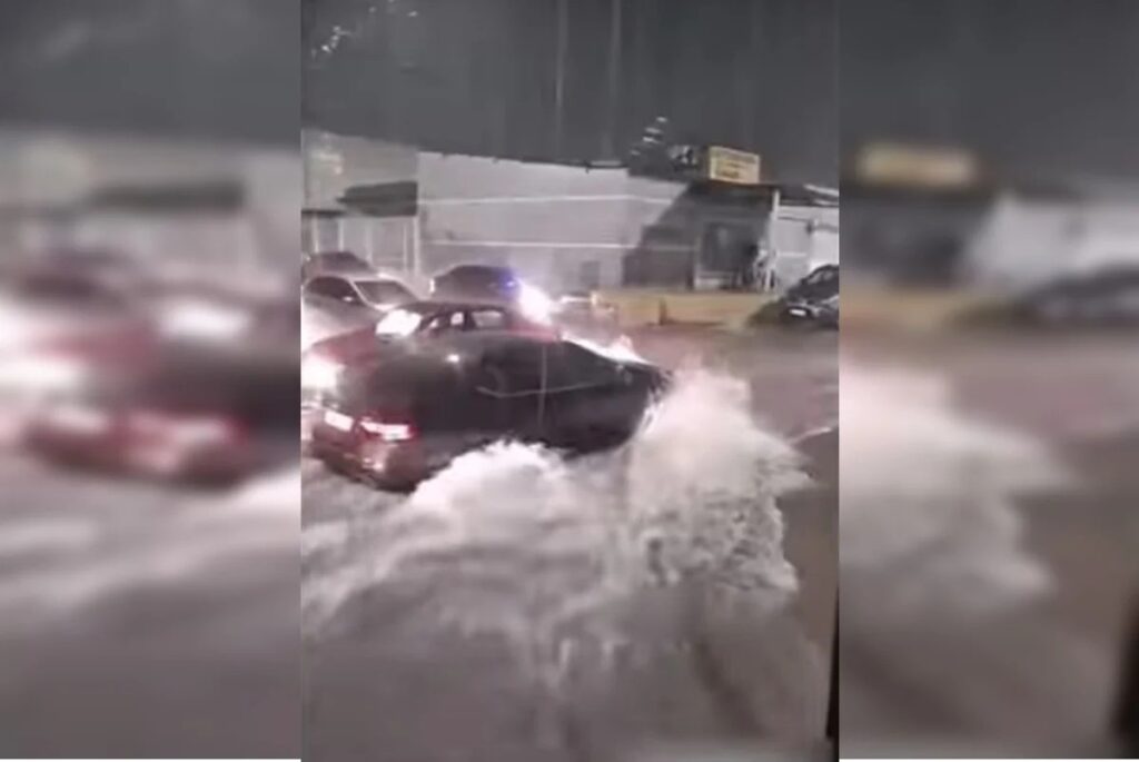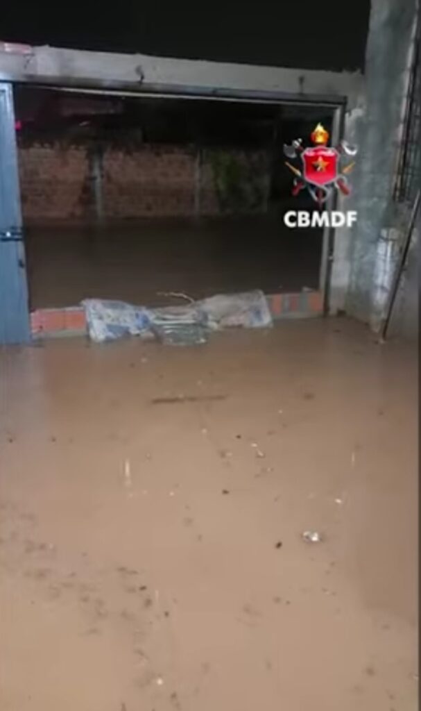 Equipes do Corpo de Bombeiros Militar do DF foram ao local e se depararam com uma rua completamente alagada, com o nível da água chegando à cintura de uma pessoa adulta.