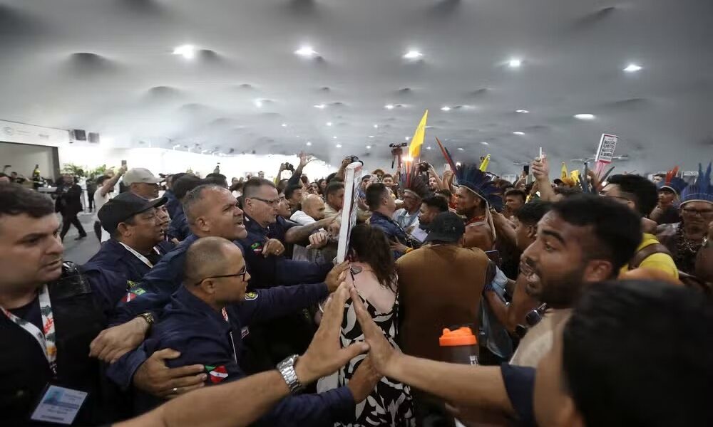 Um protesto realizado no começo da noite desta terça-feira (11), segundo dia da COP30, deixou dois seguranças feridos e bloqueou a saída de pessoas que estavam credenciadas para a blue zone. A área concentra os espaços de negociação da Conferência do Clima.