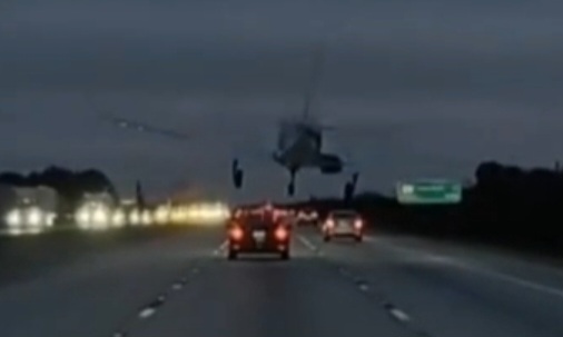 Vídeos publicados nas redes sociais mostram o momento em que o avião tenta pousar na rodovia enquanto o carro seguia em movimento.