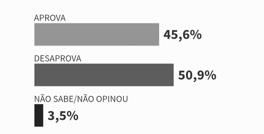 Para 32,7%, o governo é considerado ótimo ou bom; 23,1% classificam como regular; e 42,8% avaliam como ruim ou péssimo. Outros 1,4% não souberam ou não opinaram. Veja os resultados abaixo:
