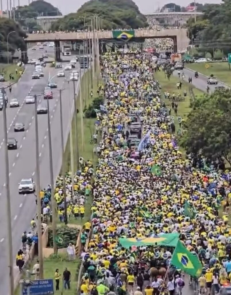 Na manhã de hoje os manifestantes saíram cedo do Park Way e estão próximos ao local final, sob chuva que atinge o Distrito Federal.