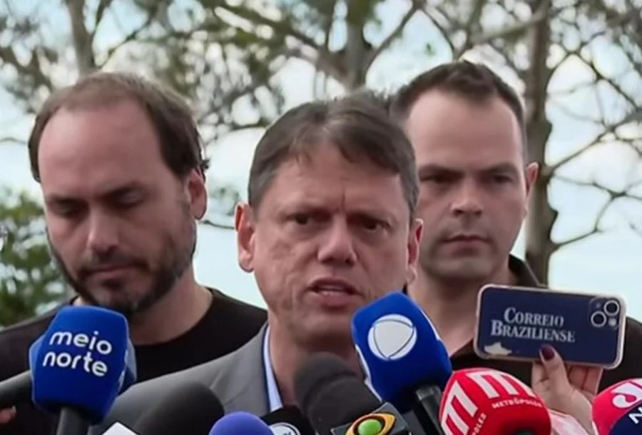 O governador de São Paulo, Tarcísio de Freitas (Republicanos), reafirmou, nesta quinta-feira (29), que apoia a candidatura do senador Flávio Bolsonaro (PL) a presidente da República.