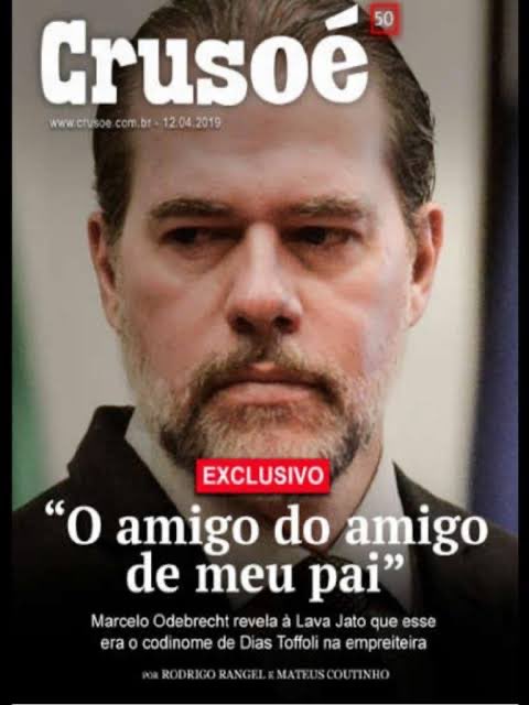 A primeira grande controvérsia surgiu poucas semanas depois da abertura do inquérito. Em 11 de abril de 2019, a revista Crusoé e o site O Antagonista publicaram a reportagem intitulada “O amigo do amigo do meu pai”. A matéria revelava trecho de delação do empresário Marcelo Odebrecht na Operação Lava Jato. Segundo o delator, um e-mail interno da construtora mencionava o codinome “amigo do amigo do meu pai” ao tratar de interesses ligados às hidrelétricas do Rio Madeira — referência que, de acordo com ele, seria a Dias Toffoli, que havia sido advogado-geral da União entre 2007 e 2009.