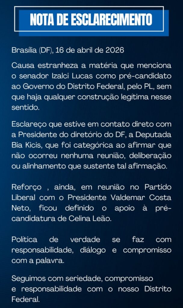 A ex-primeira-dama e presidente nacional do PL Mulher, Michelle Bolsonaro (PL),veio a público para rebater, mais uma vez, uma matéria no site do senador Izalci Lucas intitulada “Izalci Lucas confirma pré-candidatura ao Palácio do Buriti”. A esposa do ex-presidente Jair Bolsonaro (PL) expressou “estranheza” e alegou que o partido, na verdade, apoiará a pré-candidatura da atual governadora, Celina Leão (PP).